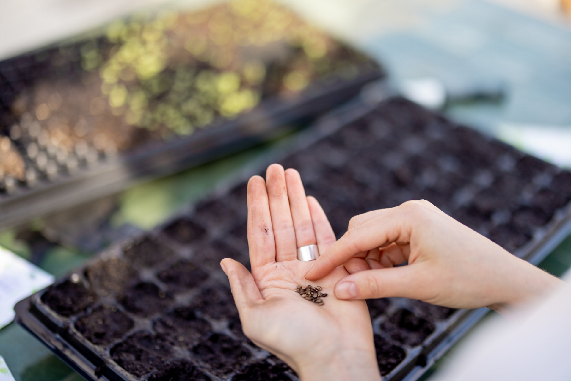 Градинската почва обикновено е твърде плътна и тежка за нови разсади, които изискват пухкава, добре дренирана хранителна среда, за да развият силни корени. Ето затова е добра идея да изберете готова смес за семена. Важно е да проверявате съставките на смесите за саксии - потърсете вермикулит или перлит, които помагат за дренажа. Ако пък искате устойчива алтернатива на торфа, потърсете смеси, които съдържат кокосови влакна.