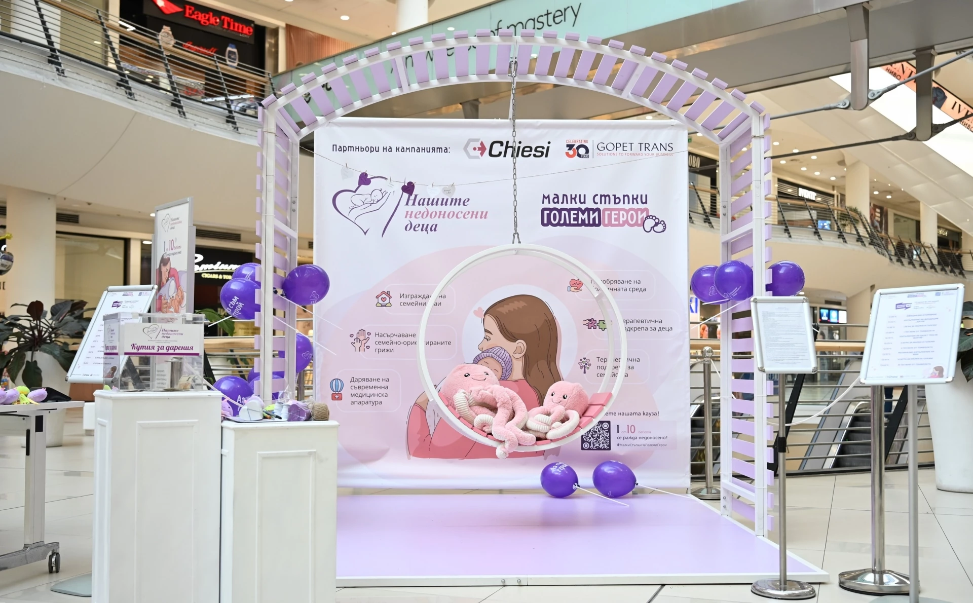 Националната инициатива "Малки стъпки на големи герои", организирана от Фондация "Нашите недоносени деца", премина през пет български града и обедини хиляди родители, медицински специалисти и съмишленици около каузата за подкрепа на преждевременно родените деца. Пътуващата арт инсталация "Люлката на надеждата" - символ на живота, грижата и човечността - бе средството, чрез което Фондацията постави във фокуса на общественото внимание темата за преждевременното раждане и необходимостта от подкрепа за най-малките герои и техните семейства. Гостувайки в Бургас, Стара Загора, Пловдив, Варна и София, тя се превърна в място за споделяне и съпричастност, където стотици хора се снимаха и споделиха подкрепата си в социалните мрежи под хаштаг #МалкиСтъпкиНаГолемиГерои.