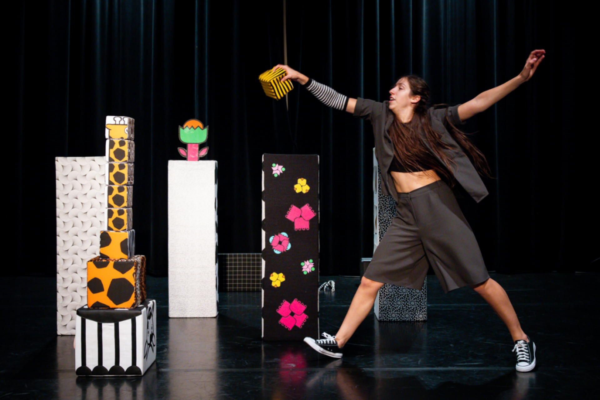 Сценографията на Дени Бонатие е нетрадиционна и изключително въздействаща – съставена от графични геометрични форми, които се трансформират в кукли и сценични обекти. Този визуален език стимулира въображението, сетивността и активното възприятие на децата.