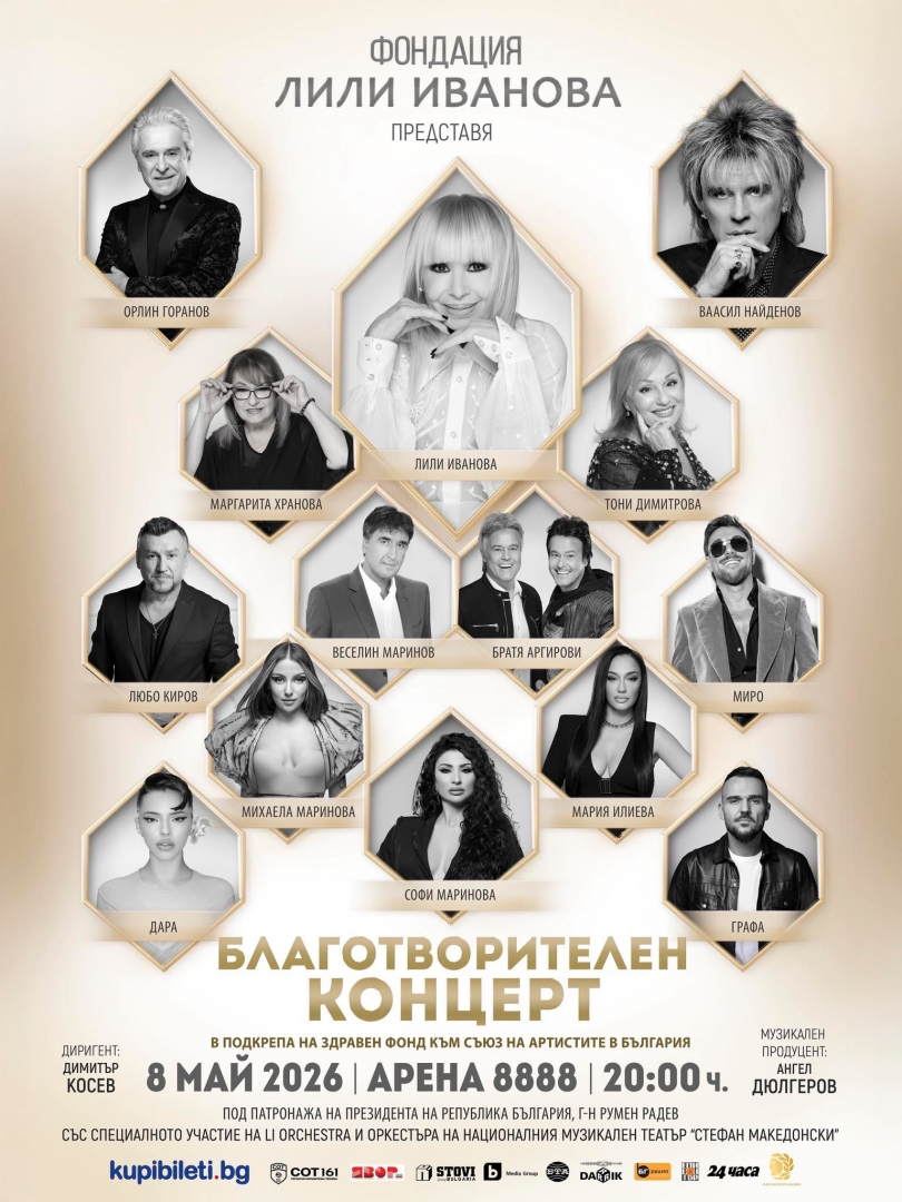 Фондацията на Лили Иванова организира благотворителен концерт в подкрепа на здравния фонд на Съюза на артистите в България. Събитието е на 8 май 2026 в зала „Арена 8888 София“. Публиката ще се наслади на невиждана досега музикална палитра, обединена от творческия размах на голямата певица.