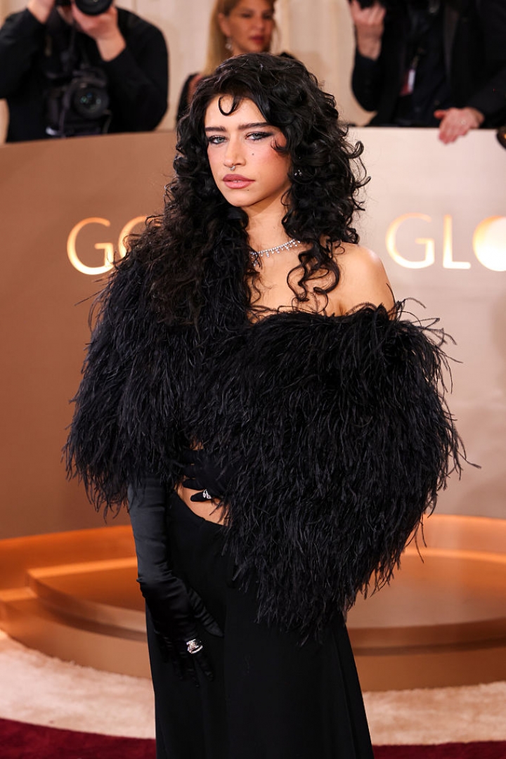 Актрисата Одеса А'Зион пък се появи с винтидж черно палто с пера на Dolce & Gabbana – предавайки малко драма от Стария Холивуд.