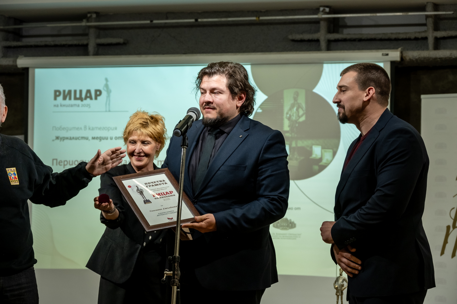 Асоциация „Българска книга“ връчи годишните награди „Рицар на книгата“ за 2025 г. на церемония в Литературен клуб „Перото“ в НДК. Събитието се проведе вчера, на 23 април 2026 г. - Световния ден на книгата и авторското право – и събра представители на институции, образованието, културния сектор и медиите.