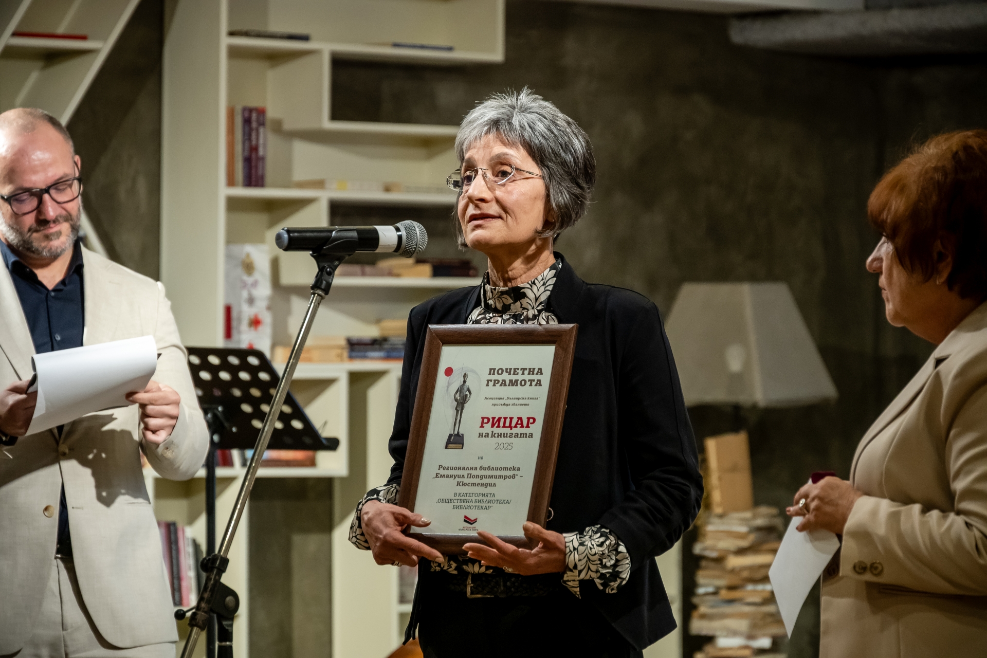 В категория „Обществена библиотека“ беше отличена Регионална библиотека „Емануил Попдимитров“ – Кюстендил: „Приемаме тази награда с голяма гордост и обещание, че ще надградим постигнатото“, сподели директорът на библиотеката.